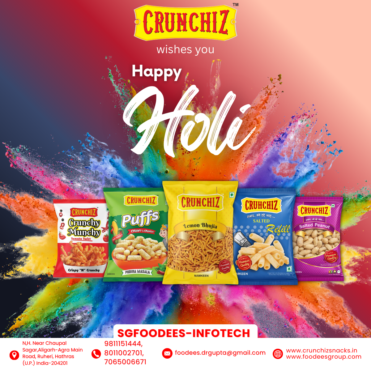 This Holi, add extra crunch to your celebrations with CRUNCHIZ Snacks! 🎉✨